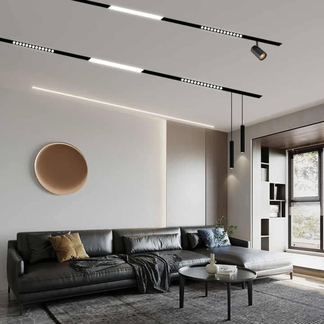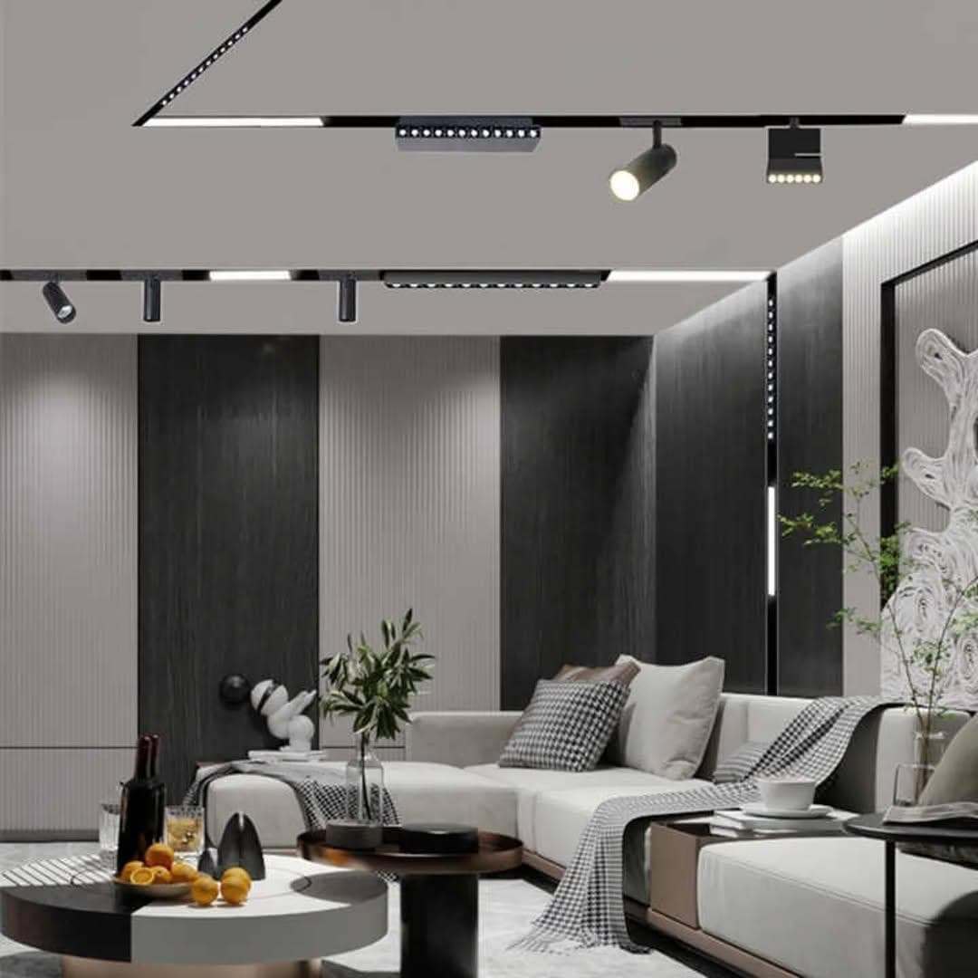 Enhance your interiors with stylish ceilings paired with flexible track lighting for the perfect ambiance.